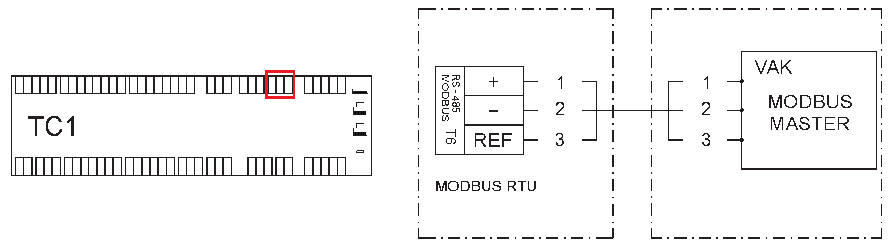 Kuva 1. Modbus RTU -väylän kytkeminen
