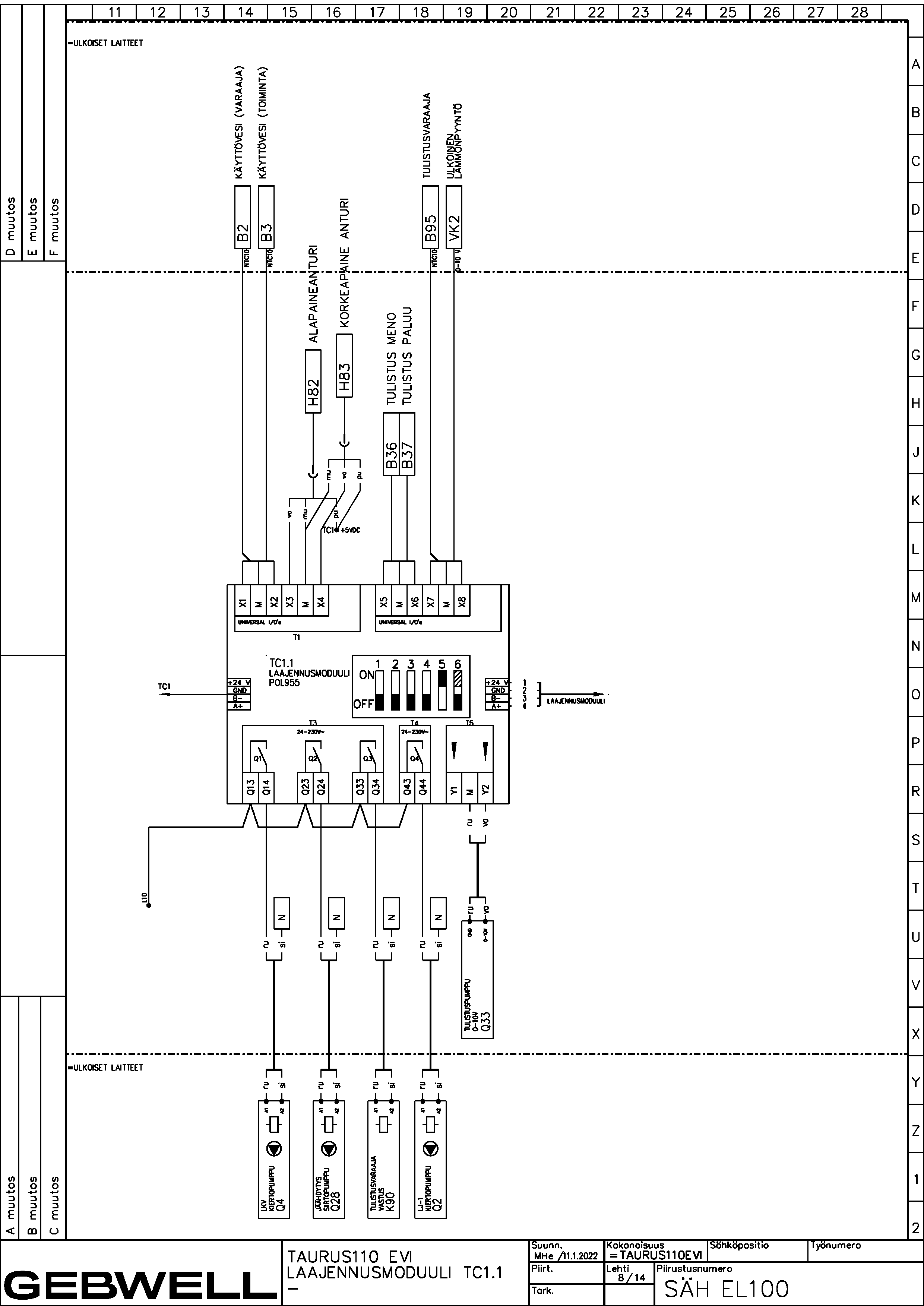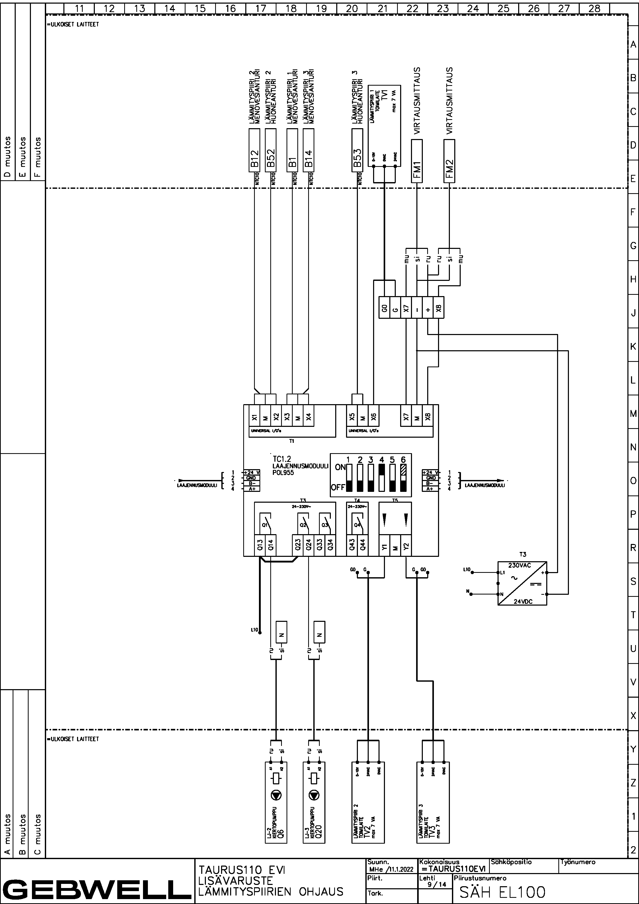 Piirikaavio, pää- ja ohjausvirtapiiri (4 sivua)